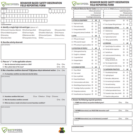 Safework Suite® Behavior Based Safety (BBS) software captures critical information about a safety event caused by unsafe behaviors that led to or could have led to damage to persons, property, or the environment. It also allows you to record observations where safety rules were followed so that you can give appropriate positive feedback.
